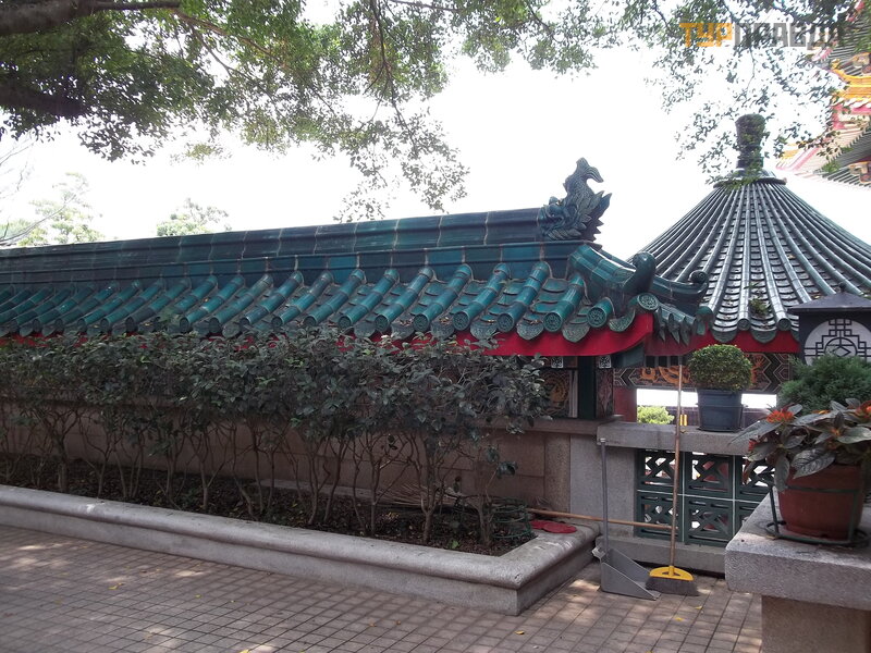 В гонконгских монастырях и храмах никто не сорит. При этом территорию часто подметают. Наверно, убирают опавшие листья: