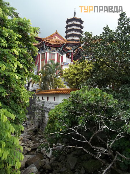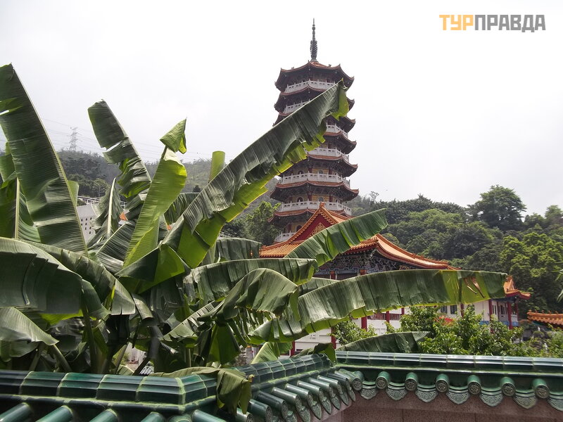 Совсем рядом с Институтом Юэнь Юэнь находится Западный монастырь (буддистский). Вот он виднеется за банановыми деревьями: