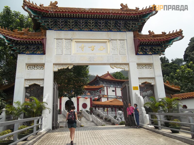 Ой, должна признаться, что неумышленно ввела публику в заблуждение. Ольга напомнила, что в районе Института Юэнь Юэнь и Западного монастыря есть еще один, совсем небольшой - Чук Лам. Мы туда тоже заходили. Это там у нее сел телефон, храм с синими стенами и зеленые крыши тоже там.