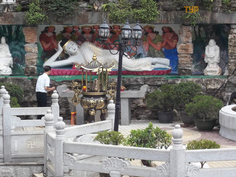 Возле этого лежащего Будды постоянно кто-то воскуривал благовония: