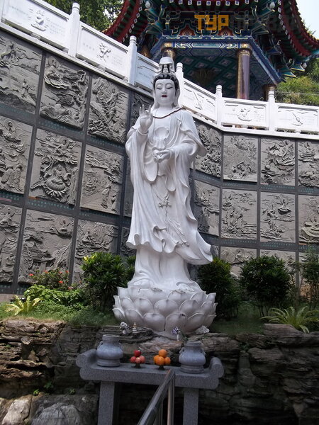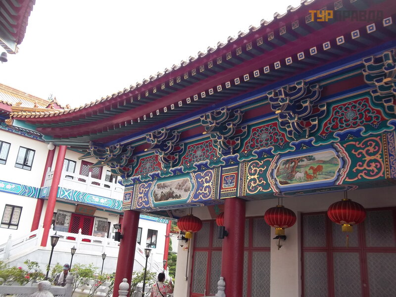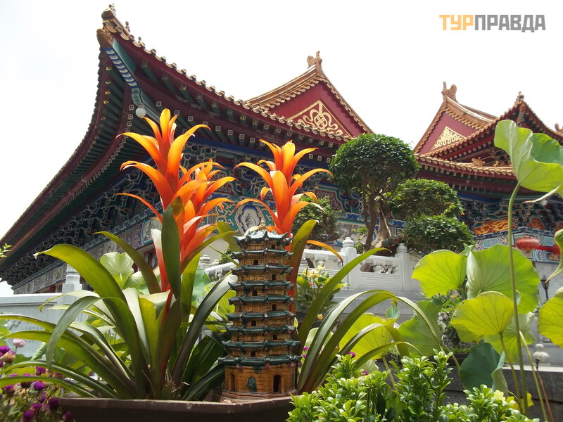 День перед отъездом был очень насыщенный. С утра поехали с Ольгой в Институт Юэнь Юэнь. «Институт» - это храмовый комплекс, активно участвующий в общественной деятельности. Его создали в 50-е годы 20 века для распространения принципов трех основных религий: буддизма, даосизма и конфуцианства, которые очень мирно уживаются в Гонконге. Институт «поддерживает» восемь добродетелей: почитание старших, уважение, преданность, верность, корректность, справедливость, честность и честь. И еще одна цель Института – «содействовать социальному благополучию».