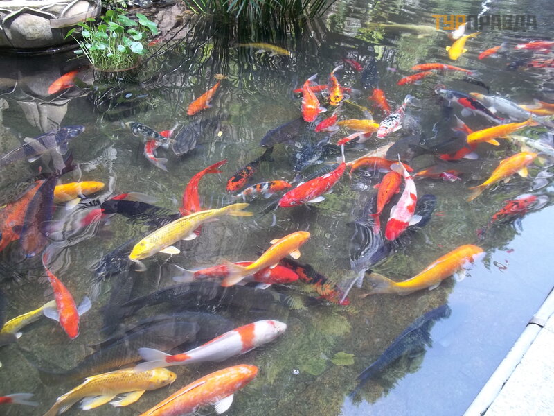 А я на фотографиях прудика с черепахами и разноцветными рыбами подзависла... Такая себе картина гармонии творений природы и творений рук человеческих в виде построек вокруг.
