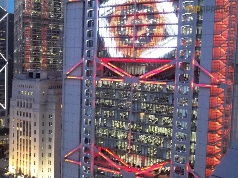 Волшебство Гонконга усилилось волшебством коктейля, настроение было и радостное, и грустное (завтра уже день отлета). И хотелось запомнить каждую минуту меняющихся красок. Первым «зажегся» банк HSBC: