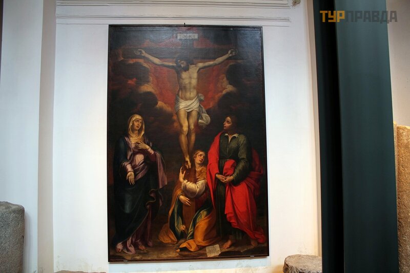 Вот здесь сбоку изображена сцена распятия (XIV в.) работы Роберто д'Одеризио.