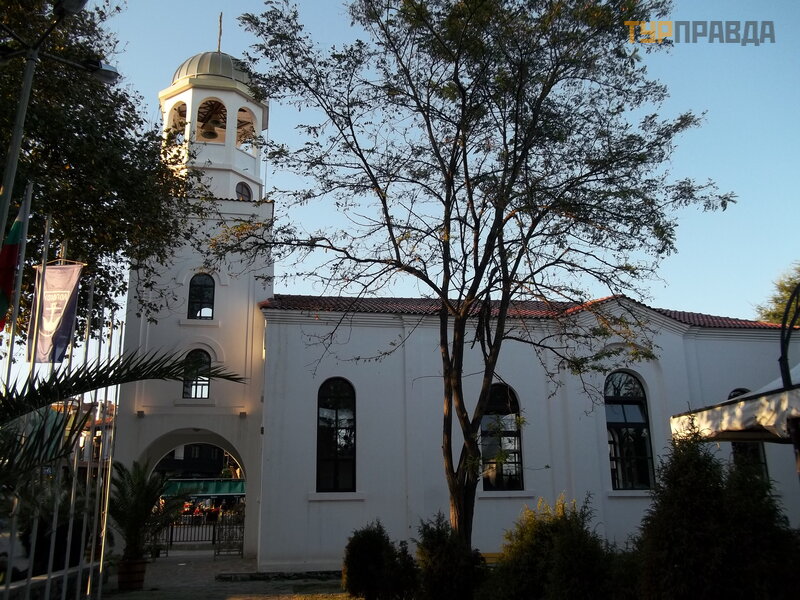 Объяснений "неосвященности" церкви как минимум два, и оба кажутся неосновательными, поэтому их не приводила. Для широких масс туристов рассказывается, что ее не освятили из-за того, что при строительстве упал и разбился один работник. А в каком-то религиозном отчете о поездке в Болгарию говорится: "церковь осталась неосвященной из-за нашествия в город графа Амадея Савойского". Углубляться не стала. Сразу напишу, что я атеистка, а все церкви воспринимаю как музеи. (И очень люблю мечети).