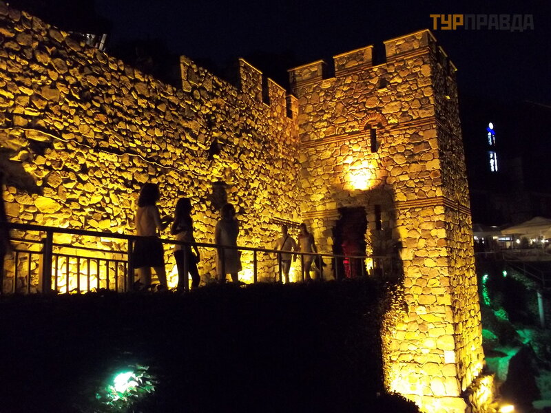 С наступлением темноты народ прогуливается вдоль подсвеченной крепостной стены: