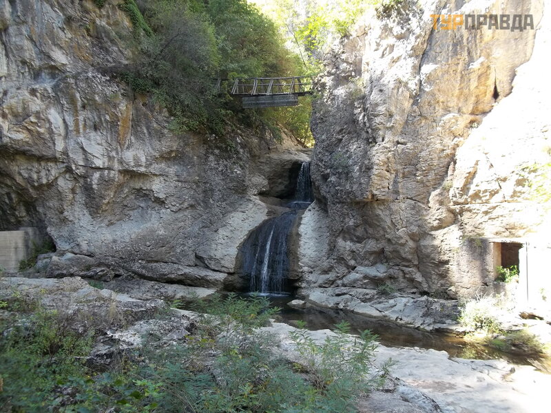 Прогулка продолжается вверх по лесной дороге мимо водопада: