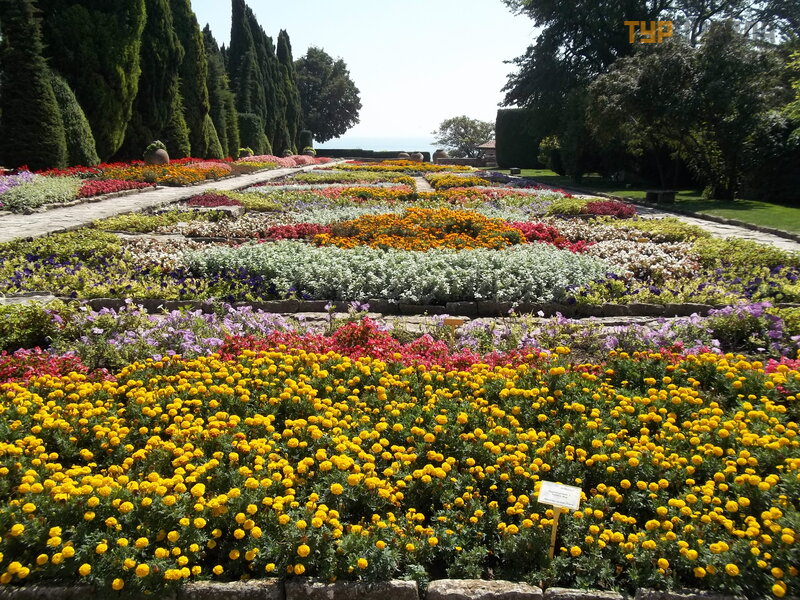 От входа в парк по направлению к морю ведет гигантская клумба: