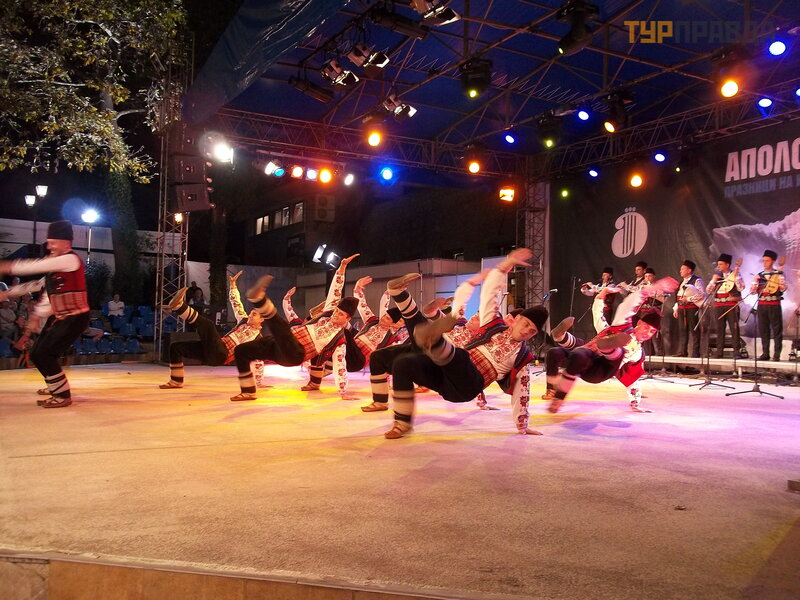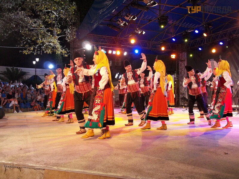 Программа международного фестиваля разнообразная: художественные выставки, театральные постановки, концерты классической и эстрадной музыки, литературные чтения, показ кинофильмов. Меня заинтересовал «Концерт – спектакъл» популярного в Болгарии фольклорного ансамбля «Тракия».