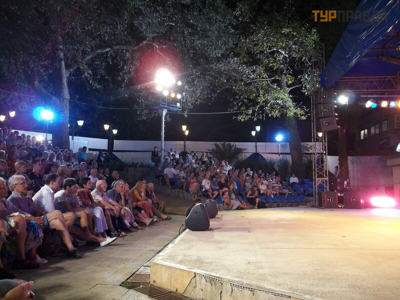 Представление начиналось в 9 вечера. Билеты заранее не покупала. Они продаются у входа в летний амфитеатр, стоят 15 и 20 лв. За 20 лв я выбрала место в первом ряду, хотя и немного сбоку.