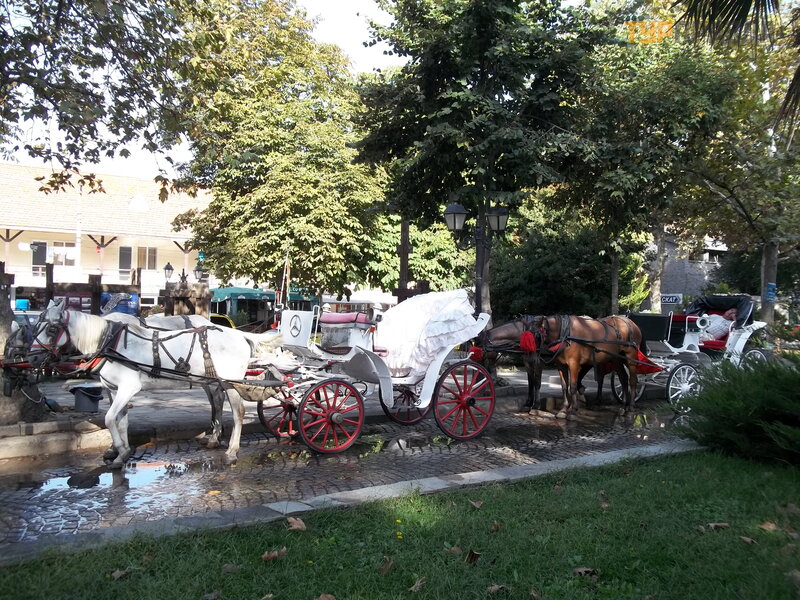 И в последний день перед отъездом было время еще раз прогуляться по старому городу. Туда ведет зеленый бульвар. Кучер, судя по всему, тут и ночевал: