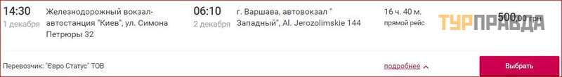 Маршрут: 1027К КИЇВ АС"КИЇВ З/В" - ВАРШАВА - 420 UAH
