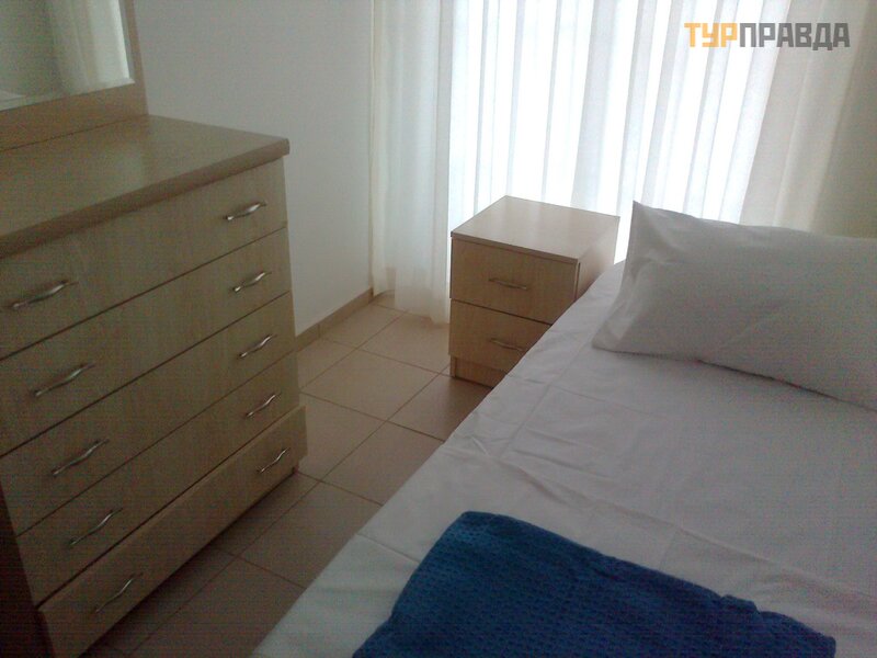 Подписи к фотографиям: На первом и втором фото - дом, в котором находится квартира. Она расположена на уровне входа в подьезд, справа виден один из балконов, второй - правее, где видна спутниковая телеантенна, а третий - за ним, дальше. На втором фото - вход в подьезд по мостику над бассейном, который в нижнем уровне. Третье фото - гостинная с кухней. На следующем фото - большая спальня, за ним фото маленькой спальни. Дальше - фото кухни. На последнем фото - санузел.