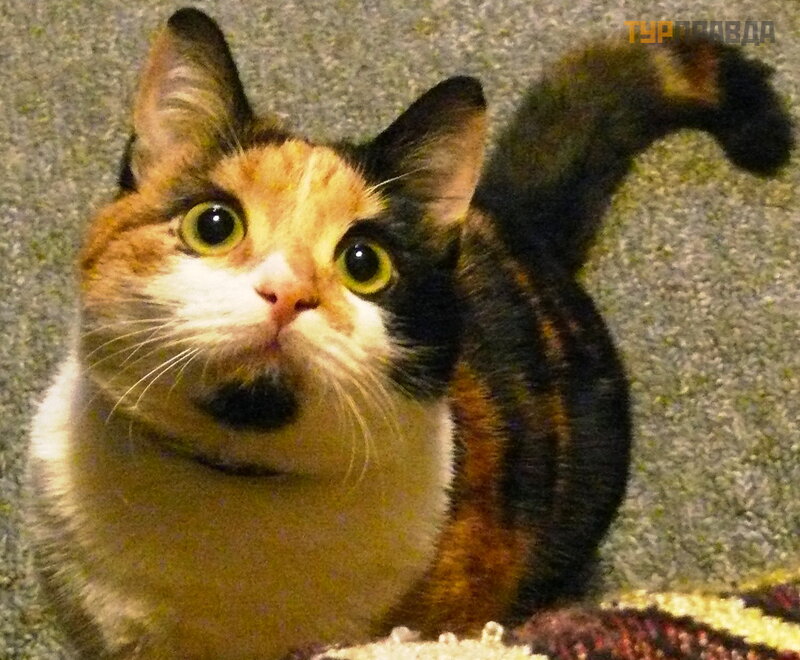 Какая красоточка! Шуба красиво расписана крупными пятнами. Наша гостья Плюша выглядит так, будто об неё кисточку вытирали.