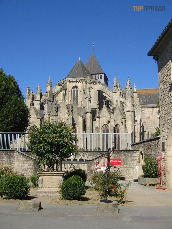 The guide to Dinan recommends starting your tour of the city from the port and the old bridge (north-east of the city). I think this makes sense, because all the guests arriving for many centuries have risen from the port to the city to an almost 80-meter height along this path. Yes, and the photo from the bottom up will be wonderful. But we arrived by bus and started exploring the city from the castle (southwest), already at the top. Unfortunately, I did not see that wonderful path from the port to the city, because I was not prepared for the trip in advance. I only knew that it was necessary to go to Dinan. Therefore, I will not talk about the streets of Petit-Fort and Jerzual. Now there are souvenir shops. It is one of the two main axes of the city. The second passes by the Cathedral Square, crossing it from south to north.