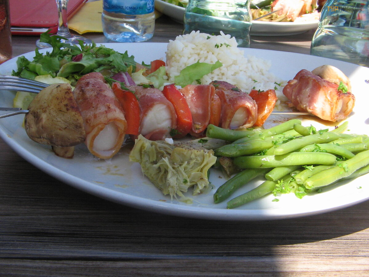 Next stop is Perros-Guirec. Here we have lunch. We decided to try the St. Jacques in the form of a barbecue, because we are leaving the English Channel farther. Scallops are placed on the coat of arms of the town. But not because here they differ in some special taste or live in mass numbers, but because one of the routes from the British Isles along the Bay of Biscay to Santiago de Compostela, whose emblem is this scallop, passed here.