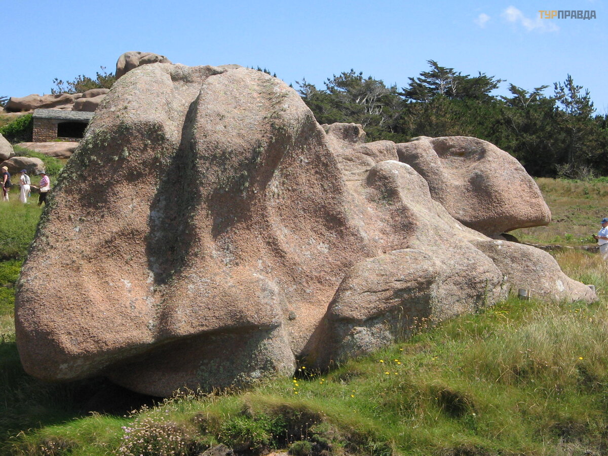 The trail, winding between giant pink granite "figures" (some have names, and everyone who walks finds his own associations, seeing these giant stones), was restored a dozen years ago, this is reported everywhere, tourists are asked not to spoil what they what is restored, i. e. do not turn off the path anywhere. It's probably reasonable. Otherwise, this feeling of savagery will disappear, which, if there were no people constantly walking along the path (and they say there are more than a million a year), would not let go along its entire length. Among the pink granites are the Mean Ruz lighthouse and tidal mills (the first such mills were already here in the 14th century). The 19th century lighthouse was restored after World War II.
