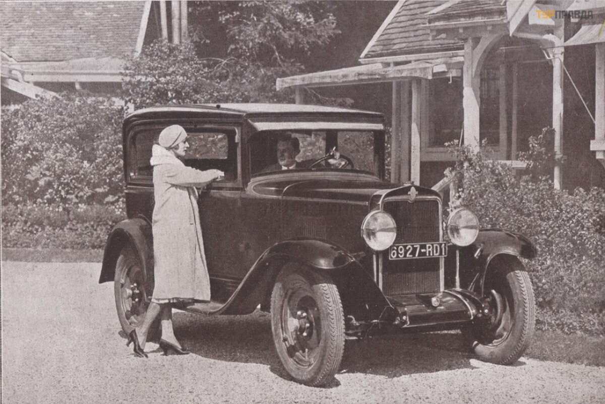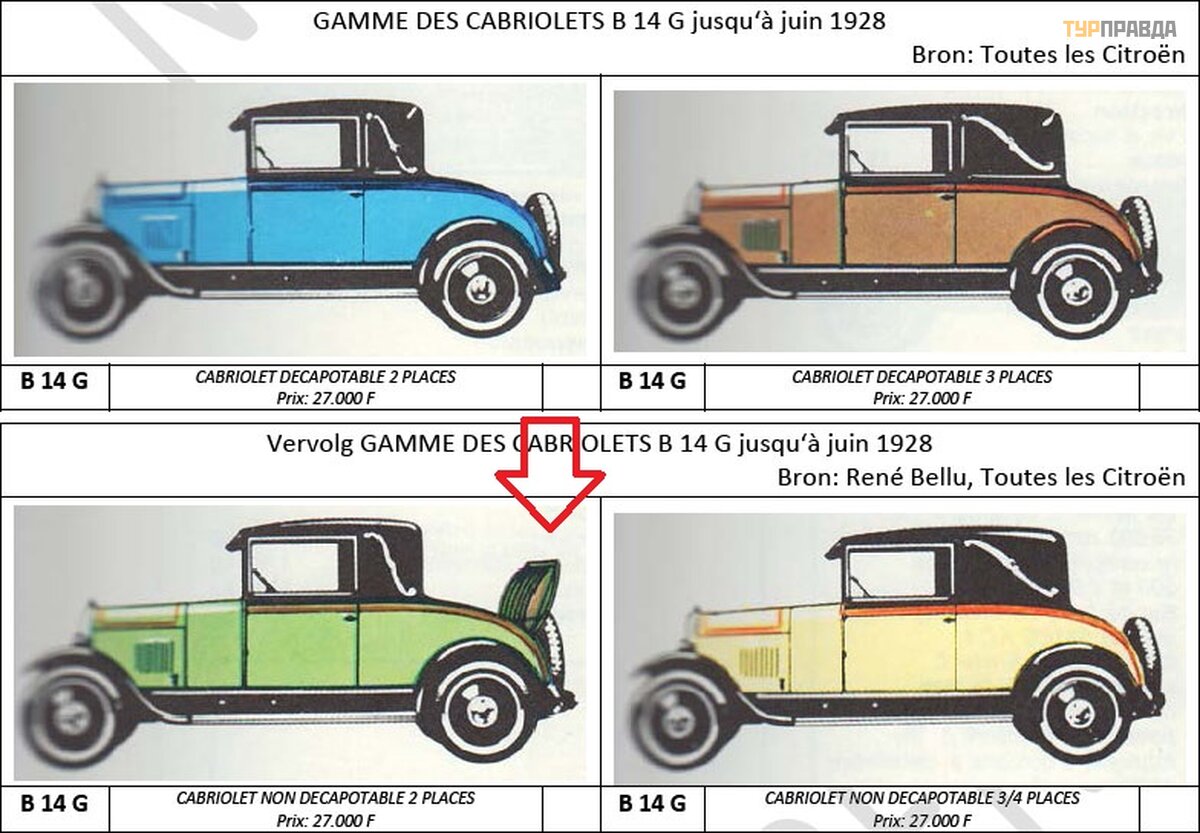 ****B - 14. - Herve and Emma have the latest Citroen model B -14 G. Number of cylinders - 4. Volume 1539 cm3. Power 22 liters. with. Max. Speed .80 km. h. Four-speed box for a surcharge. Not synced. Interior ventilation occurs by tilting the upper part of the windshield. The price in the basic configuration is 27.000 francs.