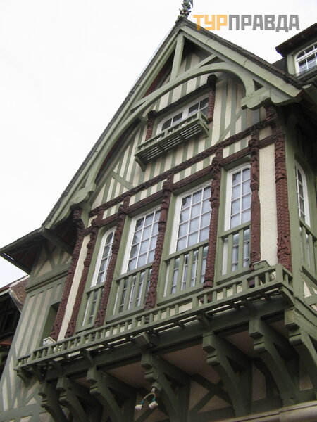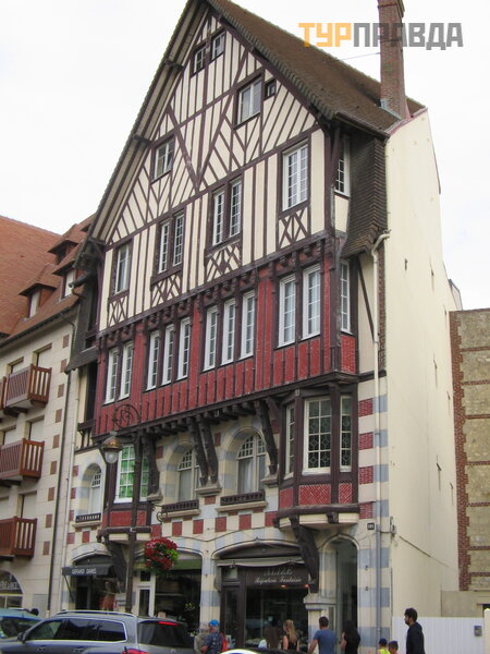 I was pleased that the modern houses in the town were built in the Norman spirit: half-timbered with mica (or imitation? ) black tiled roofs - this is the so-called neo-Norman style (the era of historicism in the architecture of the late 19th - early 20th century).