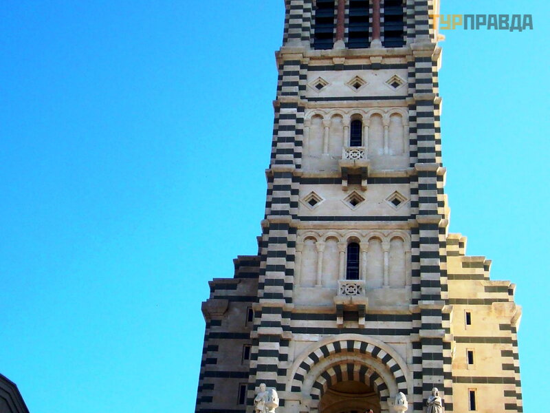 The construction of the cathedral began in 1853 on the site of the chapel, which was built in 1214 and for centuries blessed sailors on long voyages. The modern cathedral, consecrated in 1864, is a Romano-Byzantine basilica with a gilded statue of the Blessed Virgin 10 meters high and a bronze bell weighing more than 8 tons. In the interior of the cathedral - an abundance of mosaics on the Byzantine model.