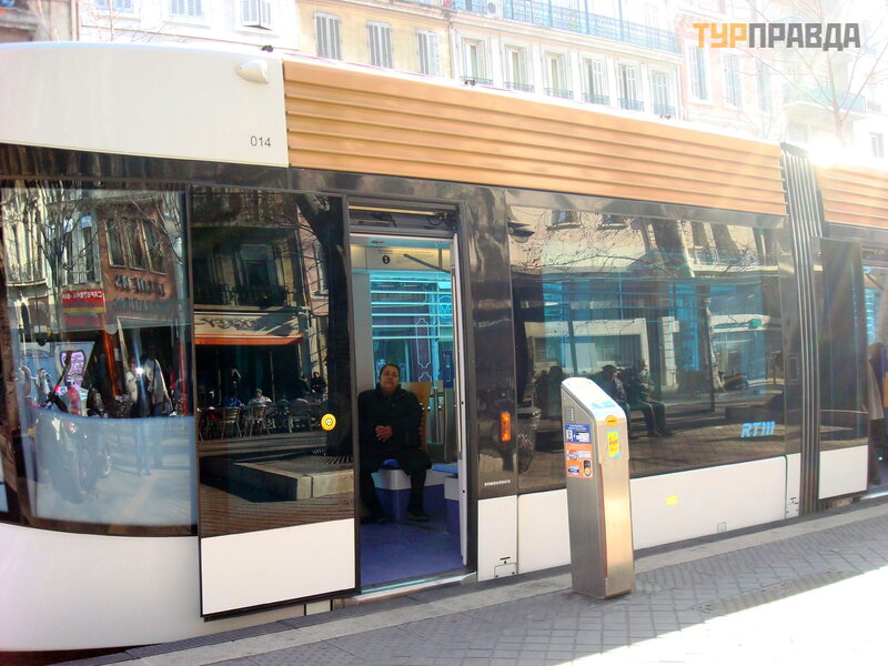 A very modern, comfortable and beautiful tram on the streets of Marseille.