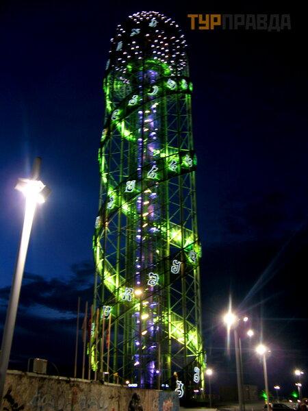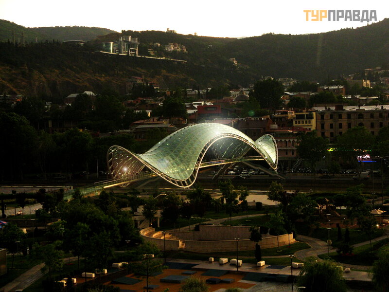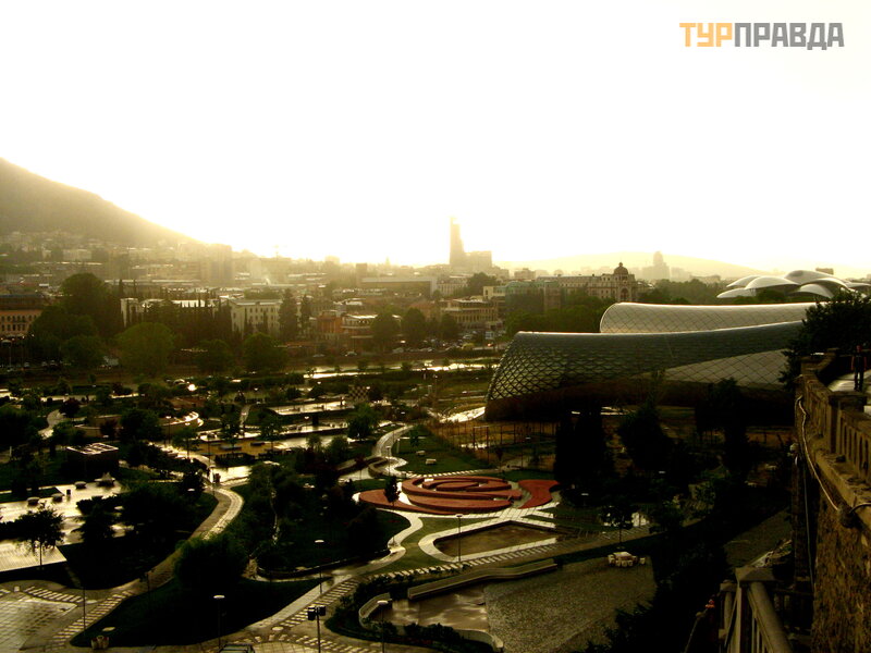 From the gate we went to Avlabar - one of the oldest districts of Tbilisi, an ethnically Armenian district. Here at the local market we bought tomatoes for 2 lari per kilogram and cucumbers for 80 tetri. Near the Avlabar metro station at the fountain, we turned onto the embankment. We did not go down to the embankment itself, but walked along the road that runs along the mountain, on which, next to our hostel, there is the president's residence. According to local belief, whoever washes his eyes with water from the Weeping Mountain will see everything very clearly. In the middle of the way, we had to return to the metro due to the lack of a pedestrian sidewalk and go to the other side, which overlooked the park near the Peace Bridge and the new theater.
