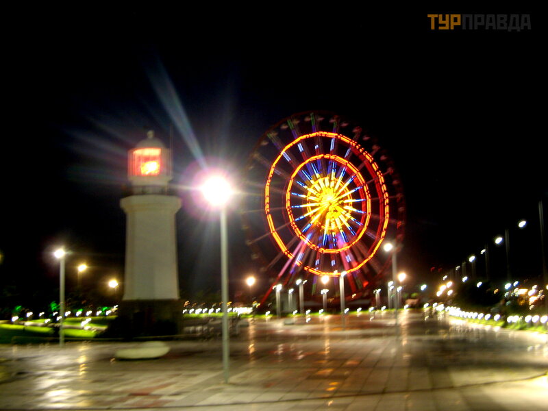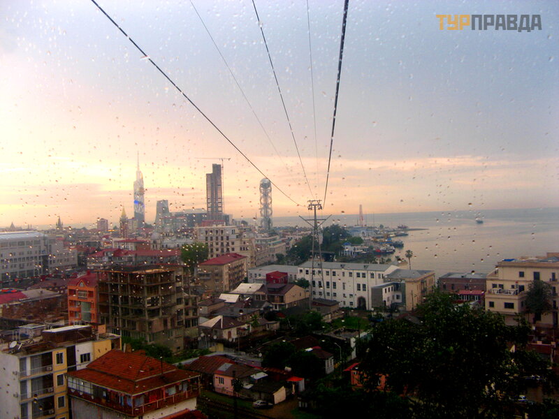 The rain did not stop, but for some reason we did not want to leave Batumi, but the clock showed already 6 pm. Intuition whispered to us to go to a restaurant near the Seaport to drink a cup of real coffee brewed on the sand - and a miracle happened: already at 18:35 the rain went behind the mountains, the sea was completely calm, and we, with a sigh of relief, went to get acquainted with the renewed Batumi. We spent a little less than an hour ascending to the observation deck and descending to the embankment, but this time was definitely not spent in vain - proof in the photo). A cable car ticket cost us 5 GEL per person.