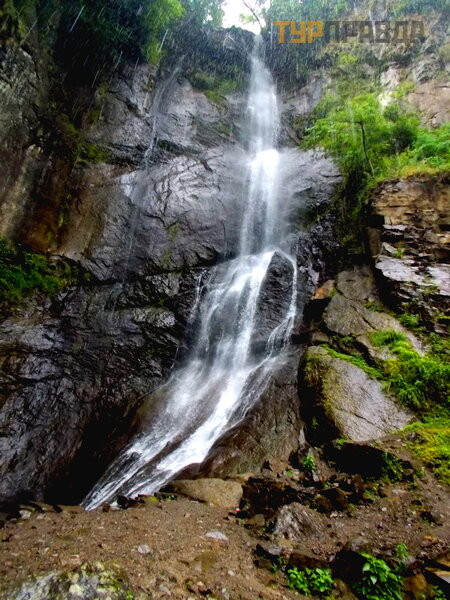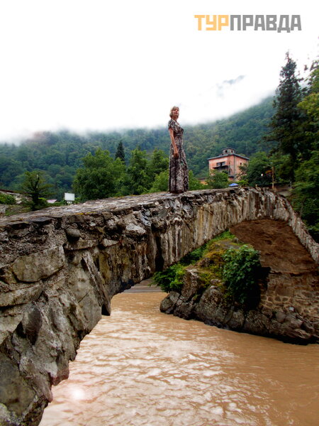 Mountain Adjara, namely the Makhuntseti waterfall, quickly dispelled the drowsiness that had fallen, and from 14:20 to almost 15:00 our cheerful team enjoyed the view first of the waterfall, and then of the bridge of Queen Tamara (XII century, it seems). You can see the reincarnation of Queen Tamara in the photo))).