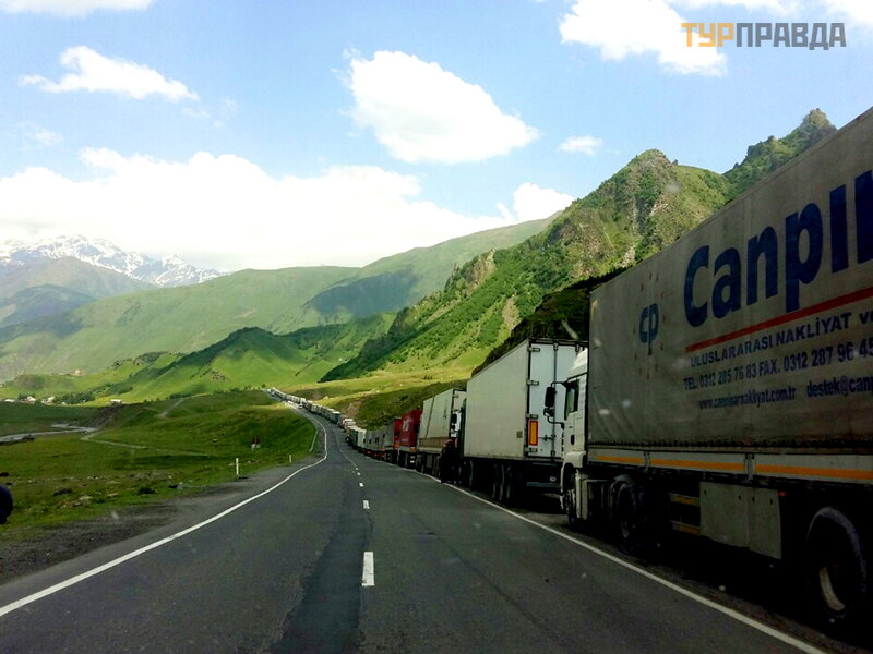 Several times I had to stop on the way for a photo shoot, then for shopping (I didn’t miss the opportunity to buy the tlapi I liked so much), so we passed the Georgian border at about 15. Here we were in trouble - in the neutral zone there was a traffic jam from cars are almost two kilometers long. Already at the Russian barrier, when our patience had almost run out, we found out that literally 2 hours later, after we drove past Kazbek, a mudflow descended there and traffic was paralyzed. We were lucky here too) after such news, we were even glad that we were at that time near the Russian border. Nevertheless, at 18:00 we entered the territory of the Russian Federation.
