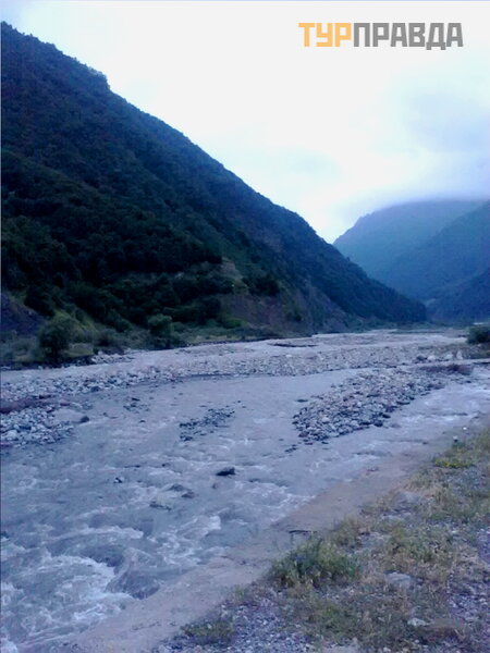 The road was familiar, but it was interesting to look at everything from the other side. So, we managed to see the famous lake Zhinvali, which we missed in the dark on the way to Georgia. See how clean and transparent the Aragvi flows between the mountains. Her contrast with the Terek was especially striking - it was dark, gloomy and, in places, frankly dirty.