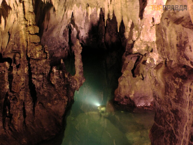 Here you can take a pleasure boat and ride around the lake. Price, if taken with a ticket to the cave 6+2 euros.