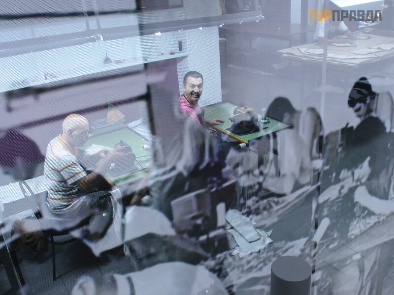 I won't write names. One is known for its odious owner and disgusting attitude towards customers and service after a perfect purchase. Another neighborhood looked more like a store in which they had just begun to deliver and hang goods. The store of the third figured in Orel and Tails shopping, and megalomania does not allow you to really look at things and set adequate prices for products even in the most severe crisis. Yes, there is something to choose in terms of quality, but all the same can be bought much cheaper. At the first of the factories, the salon was arranged so that tourists and buyers first passed through the busy workshop, and only then got into the showroom. And on the third, at the entrance, behind a translucent screen, several sewing machines and tables were also previously visible, at which people worked.