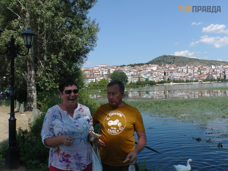 So, a hot day smoothly flows into a cool evening. After shopping, we managed to walk around the beautiful lake Orestiada, where along the banks, like in a zoo, you can look at the lives of dozens of species of wild birds, feed them and take interesting photos.