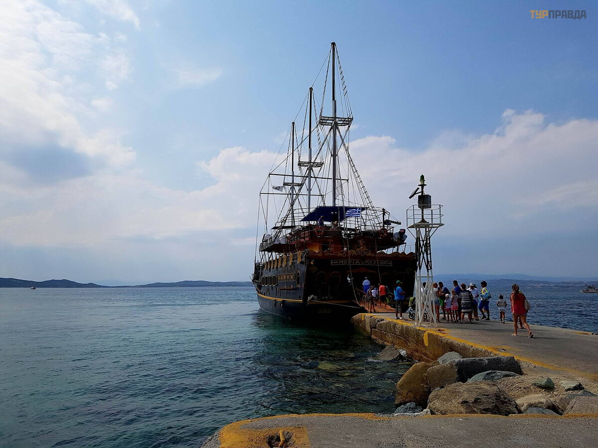 The return trip was short and took about an hour, during which there was entertainment on the first deck with traditional Greek dances and live music. Everyone could join and learn the basic movements of sirtaki and other dances. On the way back, guests vacationing on Kassandra also expected a visit to the wine cellar with a tasting of several types of wines and a large assortment of traditional Greek drinks and special promotional prices. I can say from the point of view of a person who has been working in the field of tourism for a long time that this cruise and the organization of the tour were at a very high level.