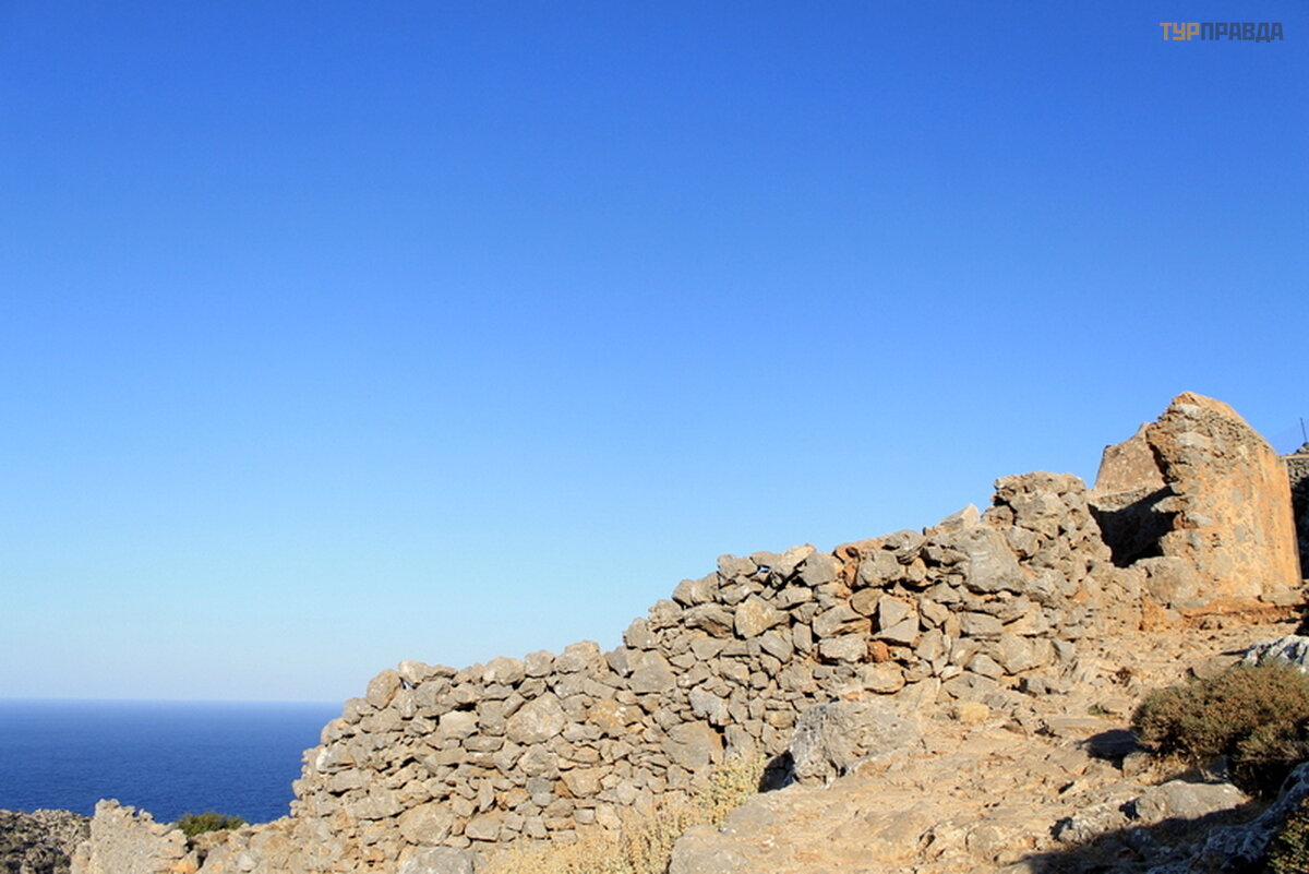 At the same time, a path begins here, descending to the abandoned Katoliko Monastery, which dates back to the 5th-6th centuries. Guidebooks say that the monastery is located in a gorge on a steep cliff and is dedicated to St. John the Hermit. We have not been able to verify this with our own eyes. Of course, we started the descent to it, but we only got to the picturesque ancient wall surrounded by the remains...