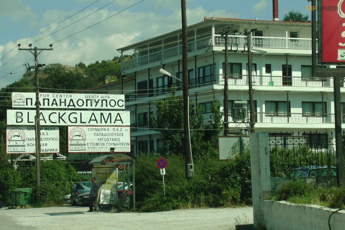 Further along the road to Kastoria, after two hundred meters, we stopped at the Gliagias factory (I could have made a mistake with the letter in the name). This was not in the plans, but the size inspired respect. We couldn't get past. The prices are attractive. Later, after visiting several factories in Kastoria, we realized that this factory is good for those who want to buy something inexpensively and without any special pretensions. Here we looked at one short fur coat from a series of those that are simpler, of a classic walnut color, but since we have not yet completed the maximum task, we remembered and went on.