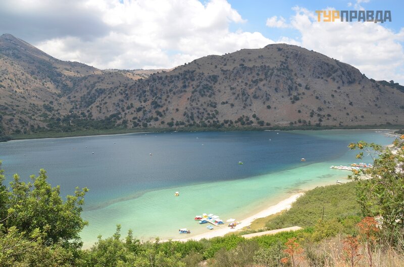 5 km from Georgioupolis is the largest freshwater lake Kournas. It would be foolish not to dip your feet in his water. The road to it winds like a snake among olive groves. You can leave your car in the parking lot at one of the marinas, where you can rent a catamaran. The cost of a quadruple is 12 euros per hour.