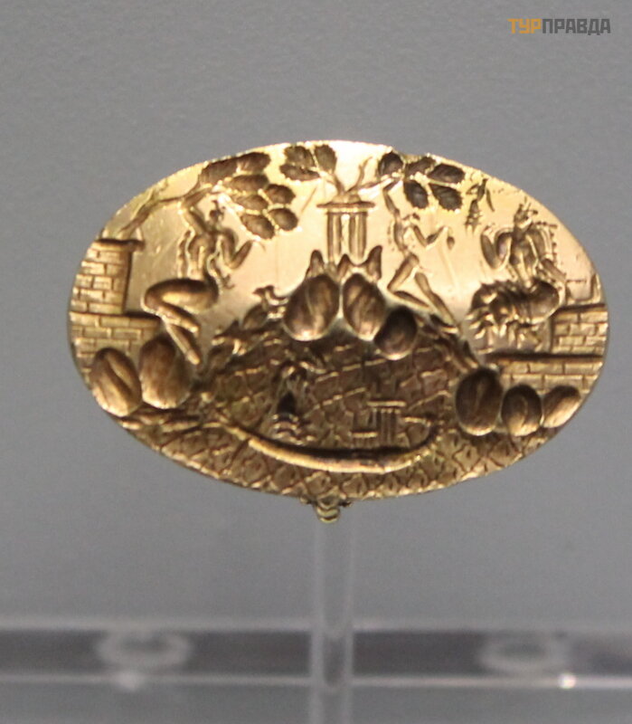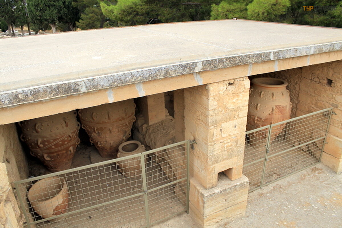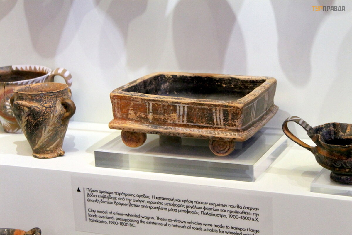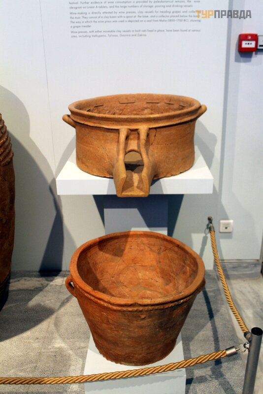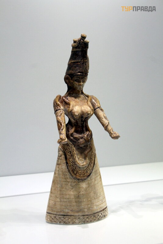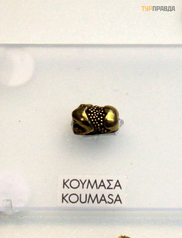 And, of course, the world-famous Phaistos Disc, found during the excavations of the palace in Phaistos. This artifact of the Novodvorets period has not yet been deciphered. Presumably, there are religious inscriptions on it. Our guide told us that just recently, scientists managed to voice what was written on the disk. Although I do not quite understand how you can voice something that is not known how to read and what it means. But nevertheless.