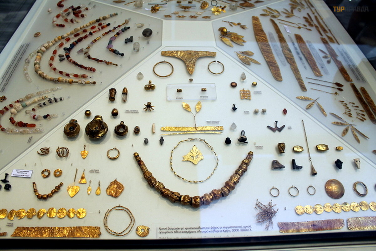 On the first floor, in chronological order, exhibits of the Minoan collection, found in the excavations of the palaces of Crete and, of course, in Knossos, are exhibited. These are jewelry made of gold and semi-precious stones...