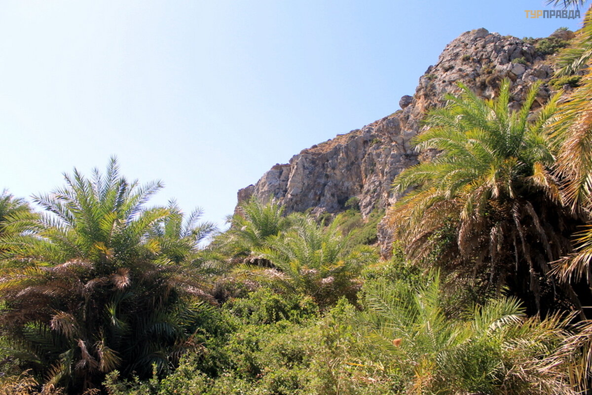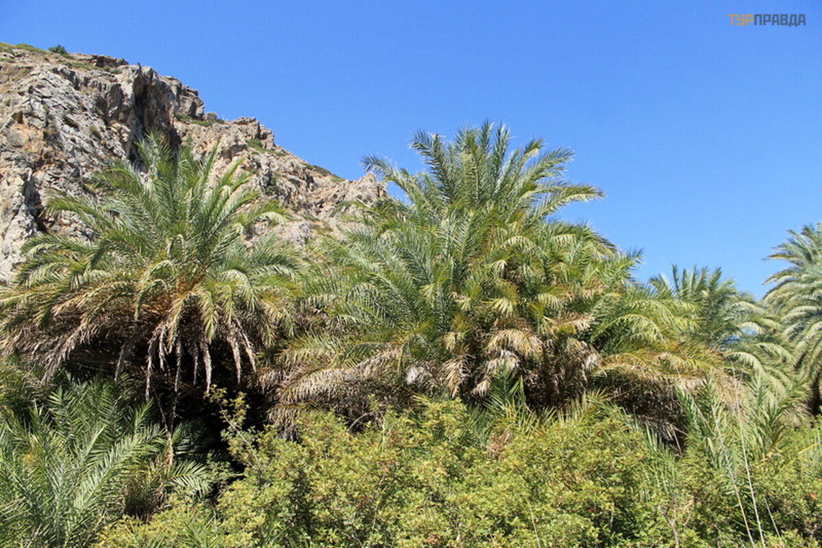 And the surrounding reality was surprisingly in tune with this refrain. After all, we arrived at Palm Beach - the second largest natural palm forest in Crete (that is, created not by man, but by virtue of an unknown whim of nature). Of course, two things worried me a little - the rather steep and tiring 200-step descent (and, accordingly, the ascent) to the beach from the parking lot described in all the reviews...