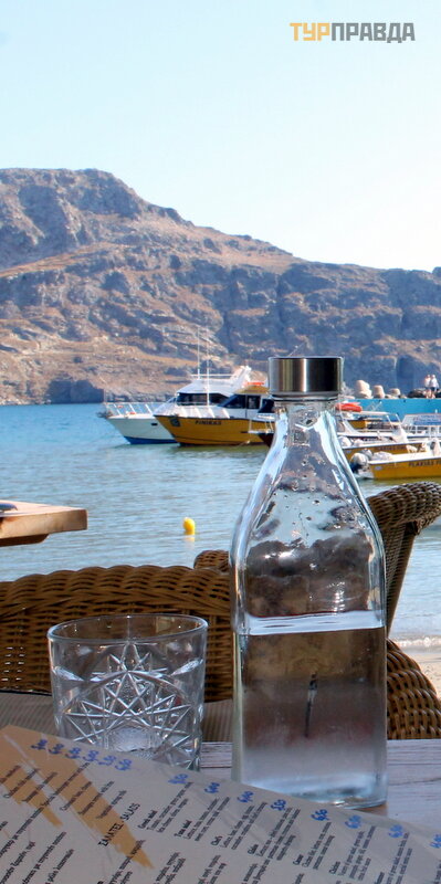 But I would not like to end my story about Crete on such a minor note, so I will mention one more of my Cretan impressions. Literally in the very first days of the trip, walking around Rethymno, we noticed that the company sitting in the cafe had on the table an impressive, thick-walled, misted bottle with a capacity of at least a liter with a clear liquid inside. Moreover, a significant part of the liquid has already migrated to no less impressive thick-walled glasses. I don’t know how anyone, but I immediately had a clear association with our folk strong drink (or, at worst, with Greek ouzo). True, the place and time of consumption were slightly embarrassing - it was a white day in a 35-degree heat. However, I thought maybe people have a holiday and they don't bother.