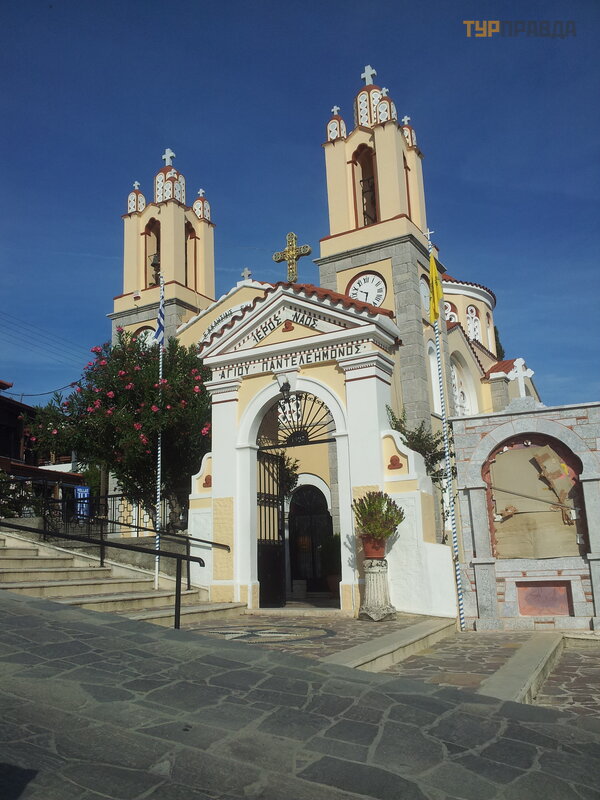 In general, the churches on the island (I don't know how they are in other regions of Greece) are very bright, cheerful in appearance. Again, we didn’t particularly enjoy the interior decoration, because. my son liked the benches, the seats are very cool rising and falling, and so loudly. All my booing and talking about misbehavior only led to additional noise effects.