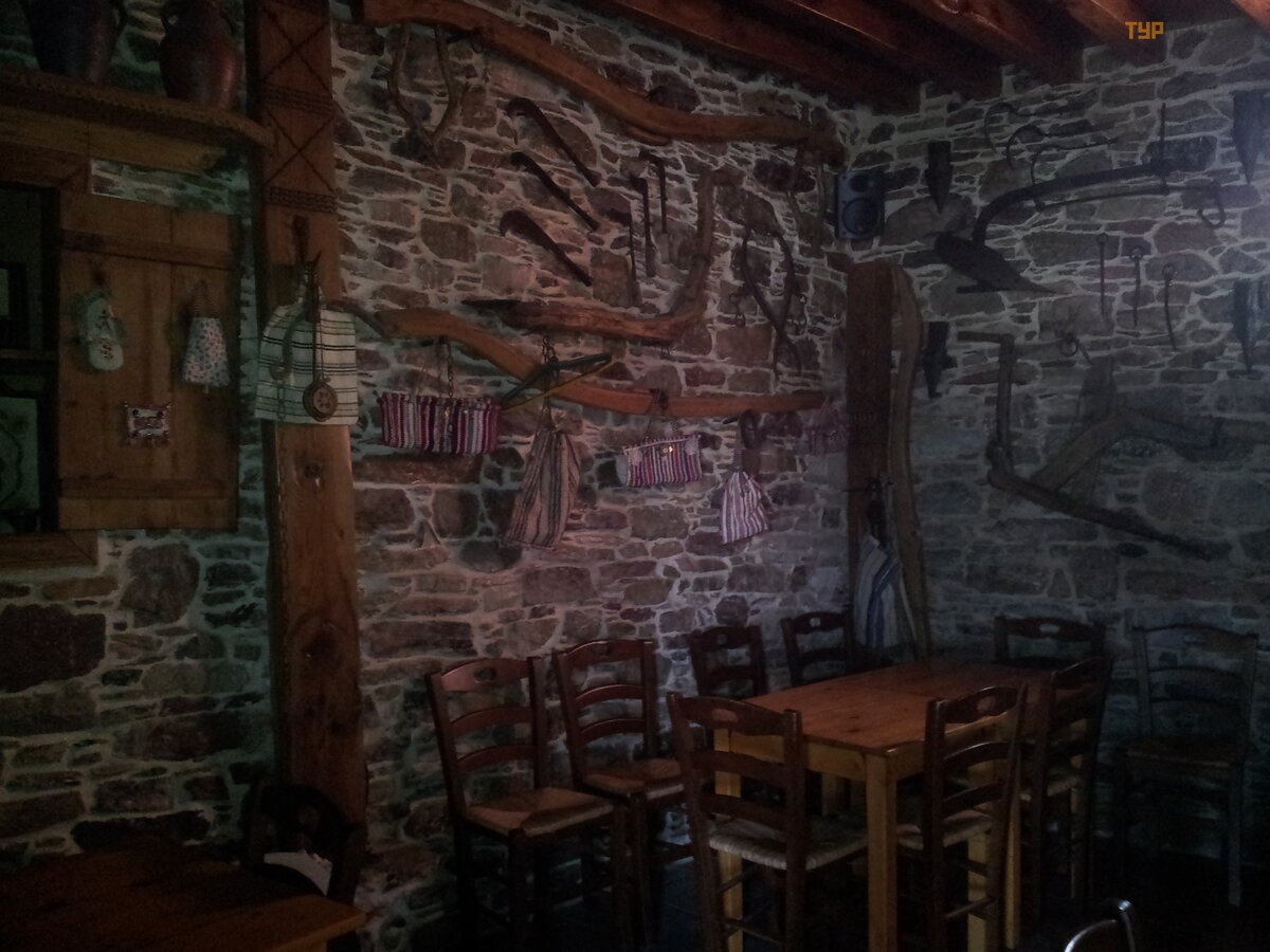In Agios, a woman jumped out onto the road, inviting them to eat. We decided to go. I won't say if it's a good or bad place. this is the only catering place visited outside the hotel, we liked it. The tavern is called "Aletro", if I understand correctly, this is the designation of a typical dwelling in mountain villages. The house was built in 1888. The owner, a nice guy who speaks English quite well, in any case, my husband understood him and then translated for me - he gave a short tour of the establishment, told where the living quarters were, where the cattle lived, etc. now, of course, everything has been redone and, as they say, meets modern norms and standards. The food was very delicious. We ordered a little, suspecting that the portions are large. Two cola 0.33 liters, two homemade sausages with french fries (this is for children), a bottle of beer and a plate of Greek salad (for mom), a portion of moussaka (for dad) cost 24.5 euros. I don’t know if it’s expensive or not, there’s nothing to compare with. Sausages, of course, got to us, because. they had bits of fat in them. In addition to us, there was only one visitor in the tavern - a local resident sipped beer, most likely discussed us with the owner))). At some point, another peasant came in, apparently a local drunkard, and handed the hostess 5 euros. Based on the hostess's stormy speech and active gestures, we assumed that he had not yet returned everything.
