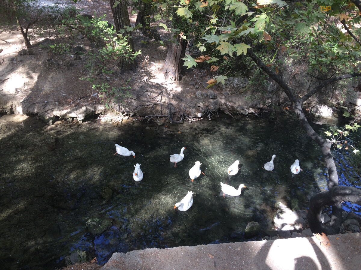 Seven sources. We decided to turn here at the very last moment in Kolympia on the way from Kiotari, where our hotel is located, to Filerimos. It seems like, and the hook is not very big, and we will take a look at the villages that we have not seen before - Archipoli, Psinthos, Maritsa... In general, nothing special. Most likely, it’s good here in the sweltering heat, or rather, when it’s hot everywhere, but here it’s cool because of the forest. We walked around, the children tried to chase the geese, they ran away in time - they flopped into the water.