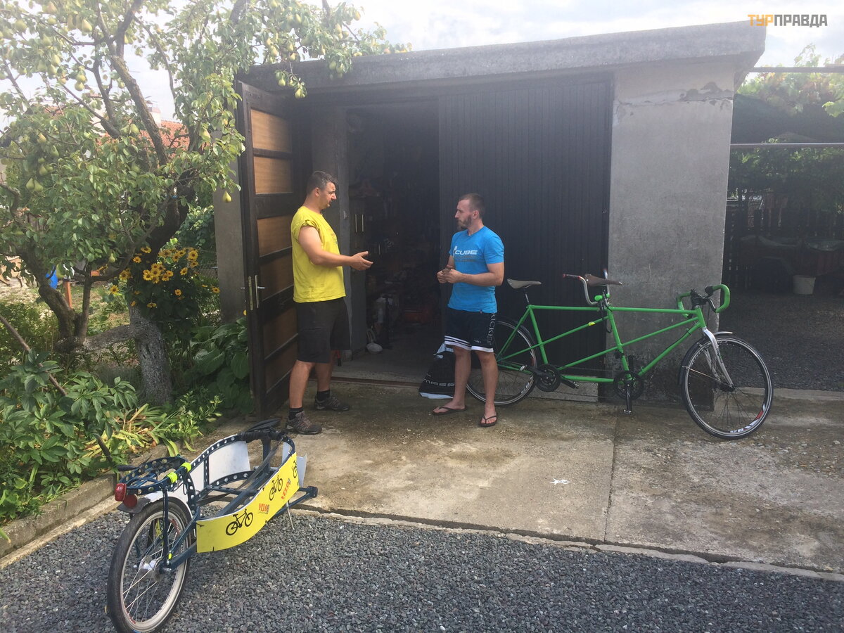 17. Descent. Mountain serpentine without brakes. Worn sneaker. Hitchhiking with tandem (Slovenia - Croatia, Buzet)