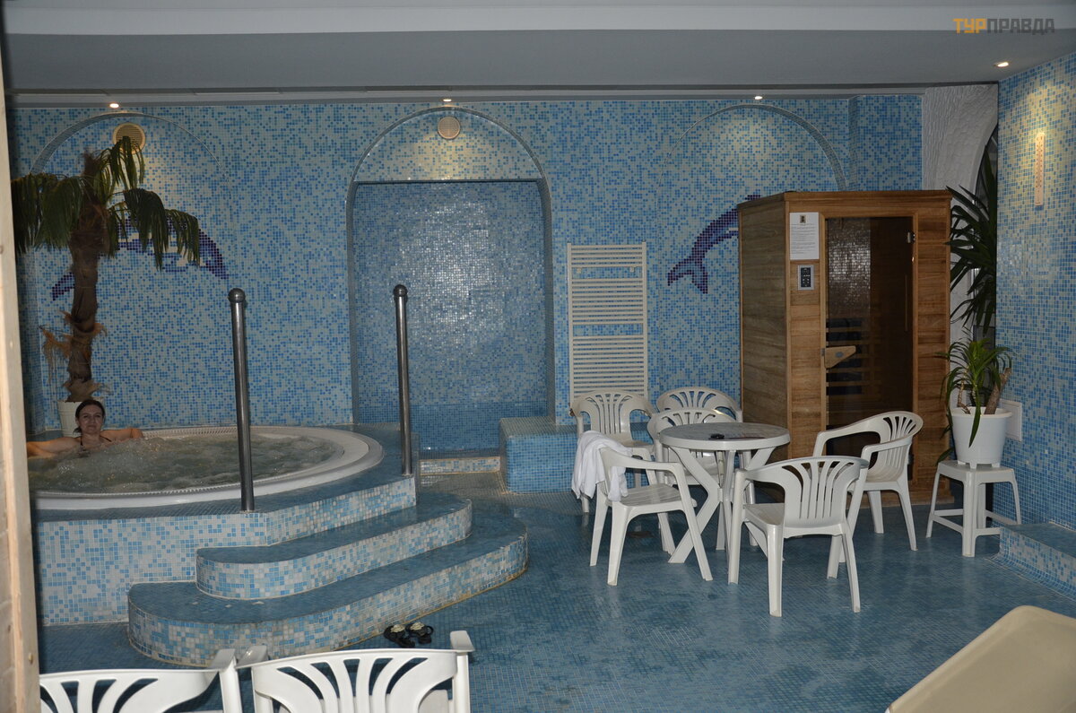 Many visitors were with children, despite the fact that the bath is more health-improving than entertaining. The inner round cave, where the light and sound effects, as well as the starry sky, did not "hook". The external pools were not in operation, they were actively repaired. Therefore, it was not possible to fully enjoy the entire bath. Either they didn’t finish it, or we got stuck))
