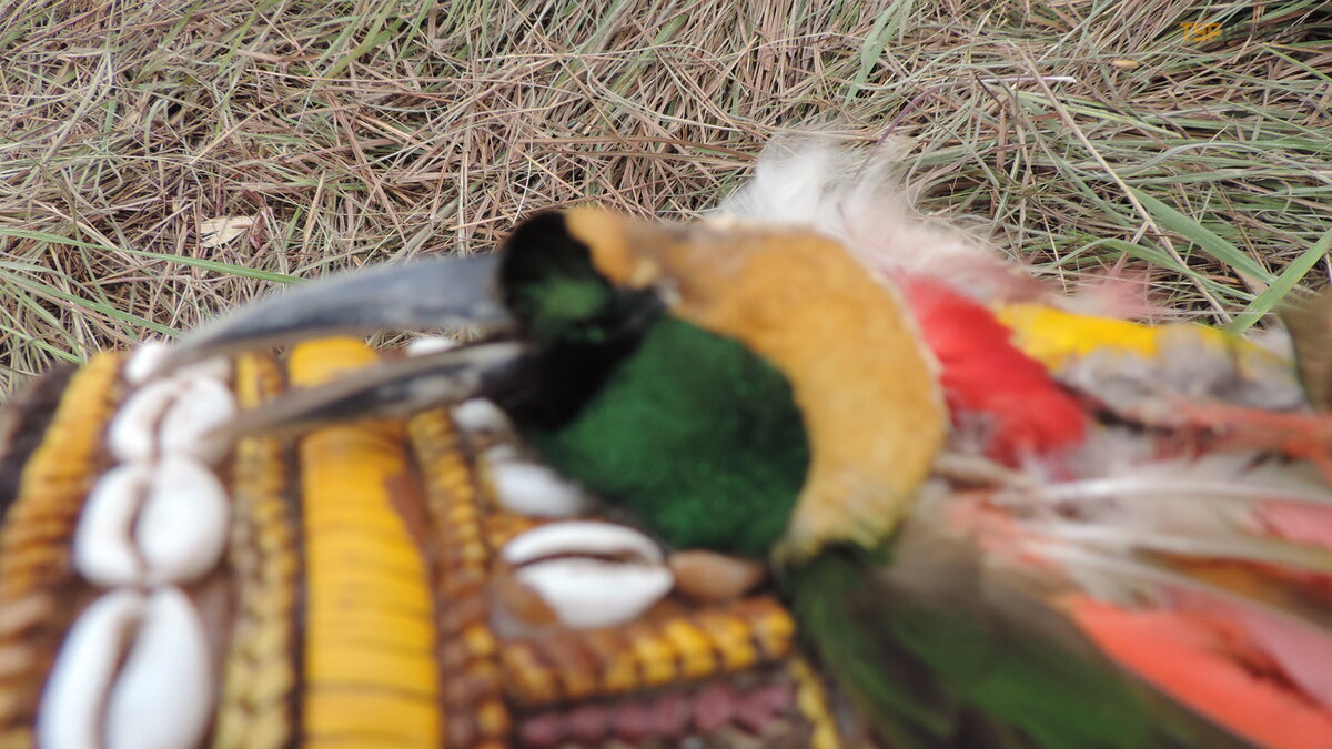 the hat is very expensive and export from the country is prohibited, as it is very beautiful and rare bird of paradise