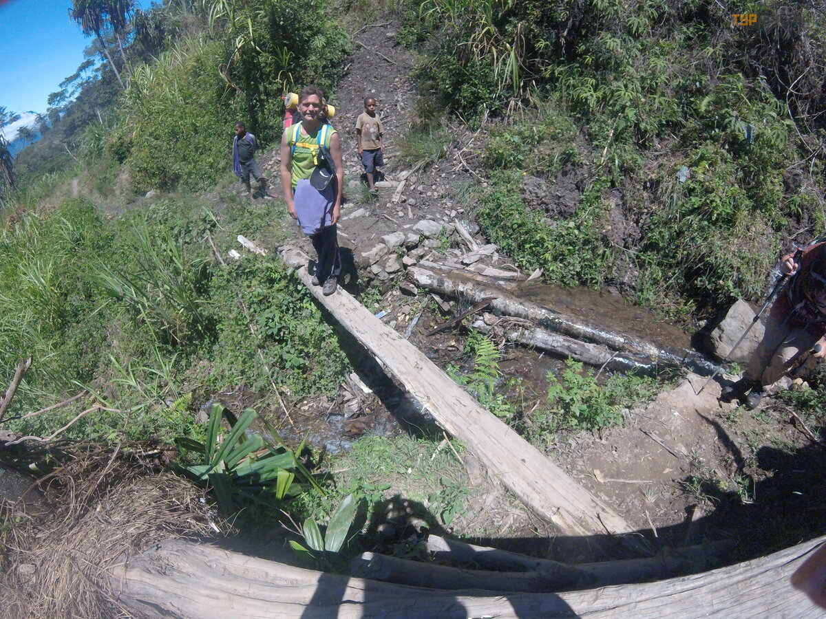 got a second wind! Today's route is in the jungle, there will no longer be a scorching sun. We ran out of all drinking water, so we were given army filters and flasks. Water can be drawn even from the swamp, which we did. But the filters were not given to the porters, and although they were local and accustomed to their water, they developed diarrhea, we saved them with our activated coal, but they were pale and out of 3 porters with our lagging group only one Raymond remained. Very often in the mountains on narrow paths we met with the local population, who always greeted us by the hand with either badi or bagi, they go on foot to Wamena to the bazaar for provisions and back on their heads, along these goat paths they carry heavy shopping bags with food, with children, with water and pots. It's a pleasure to watch them, you walk almost on a lung and breathe, with special shoes, in overalls, and they are barefoot, and their legs are like flippers, and they choo-choo,
