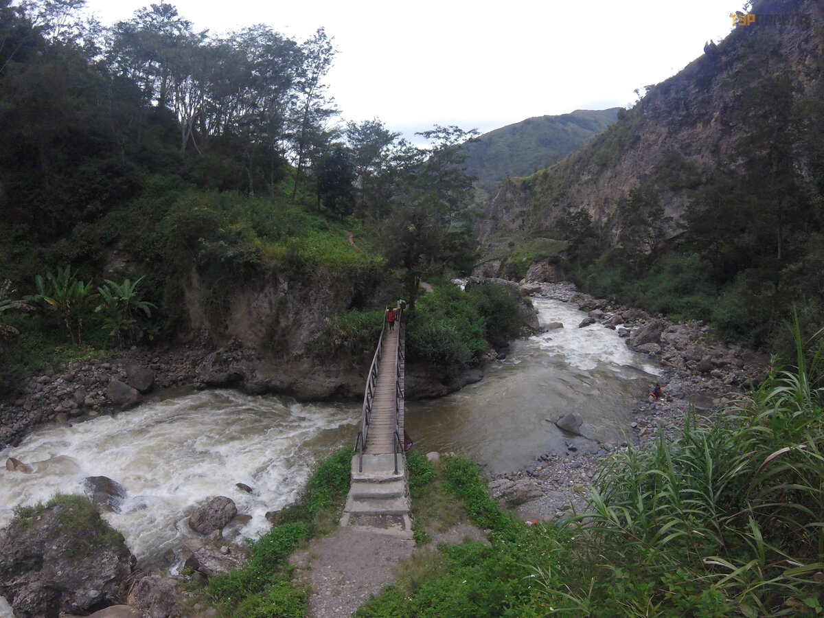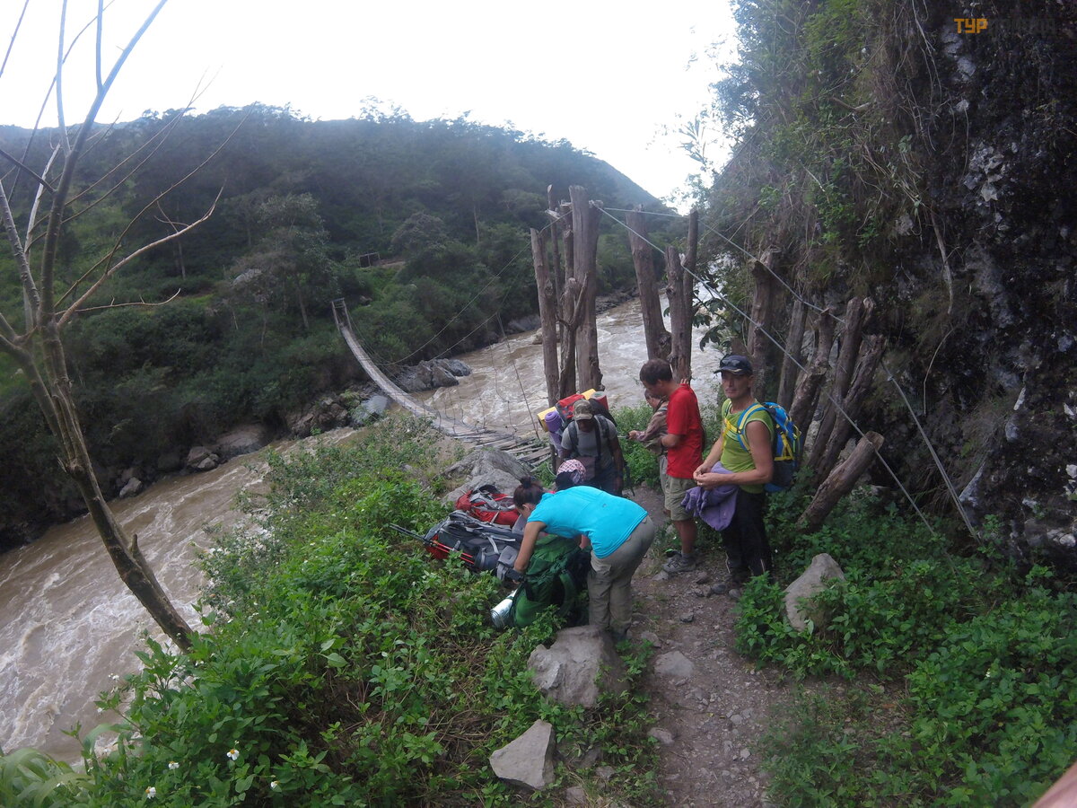 The crossing over the dangerous bridge begins. Why dangerous? Yes, the boards are all like dust