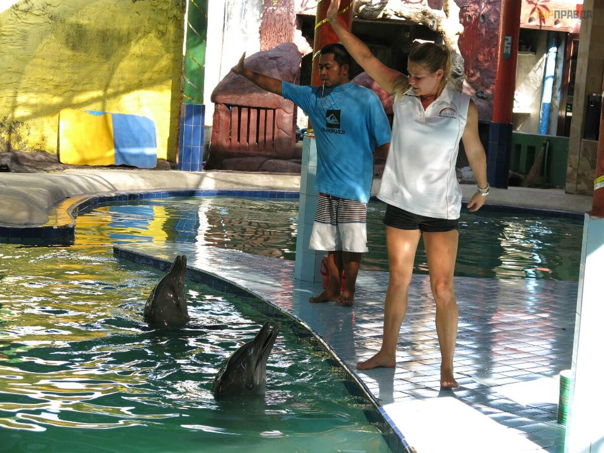 They say that these are rescued dolphins from Jakarta, where they wanted to be killed for some reason. Later we went swimming with dolphins, you feel like a child next to them. Swimming charged us with positive for the rest of the rest.